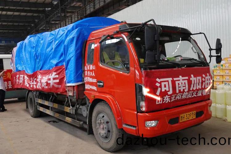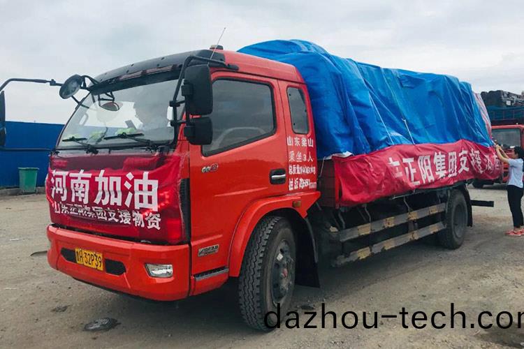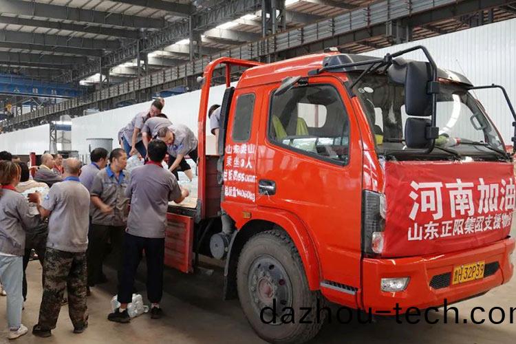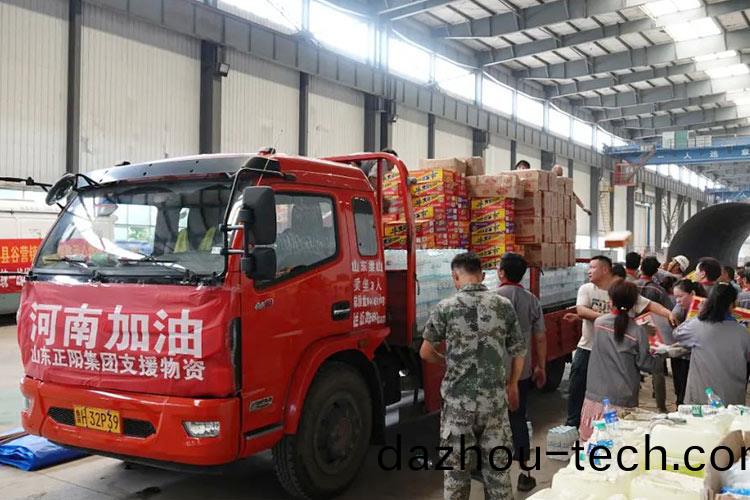 洪水无情、人间有(you)爱,一方有难、八方支援,2021年7月27日,正(zheng)阳集团调集车辆,组织骨干奔赴河南省(sheng)重灾区(qu)新乡市进行支援。此行来回驱车500余公里,为(wei)灾区送去方便(bian)面、矿泉水和饼干等(deng)物资。